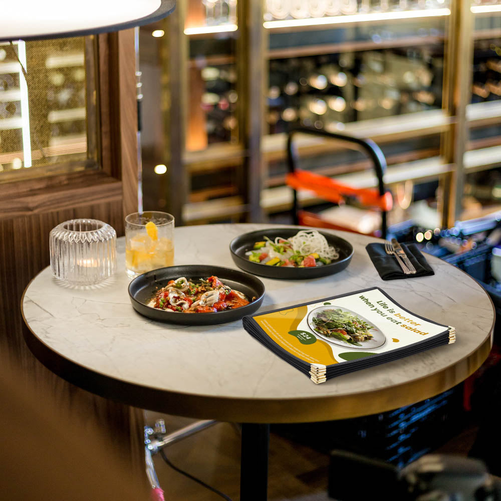 - Slide-in design allows you to slide in the menu paper from the side in seconds, making it easy to update your menu