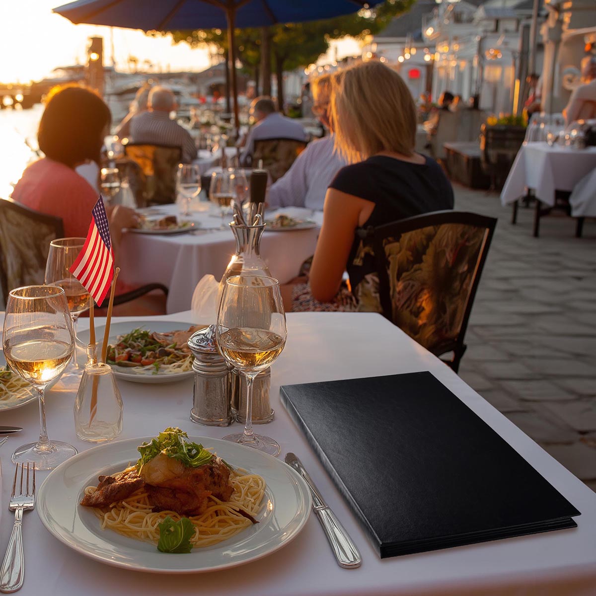 - 5 pieces of booklet-style menu covers, each cover with 6 views to hold 8 1/2" x 14" menu sheets
