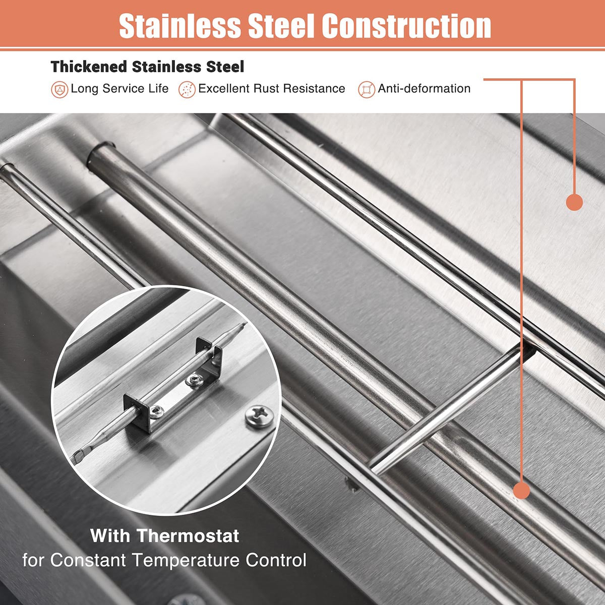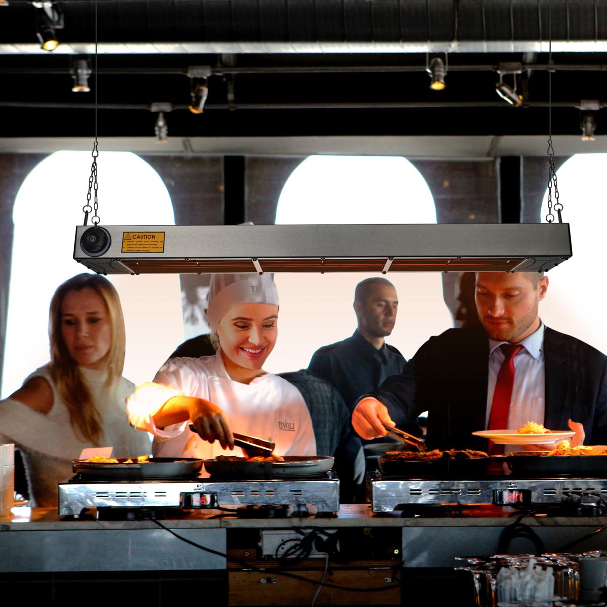 36 inch Electric commercial food warmer features 2 installation methods of screw-on hanging type & free-hanging type for flexible installation, along with 1000W heating tube for effective yet constant heating, suitable for commercial use such as restaurants, catered events, buffets, etc. to keep dishes at ideal serving temperature.